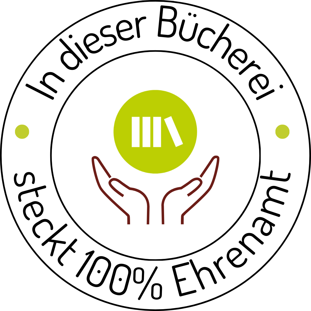Um Ihr ehrenamtliches Engagement auf einen Blick sichtbar zu machen, bieten wir Ihnen Sticker mit der Aufschrift: „In dieser Bücherei steckt 100 % Ehrenamt“ an.